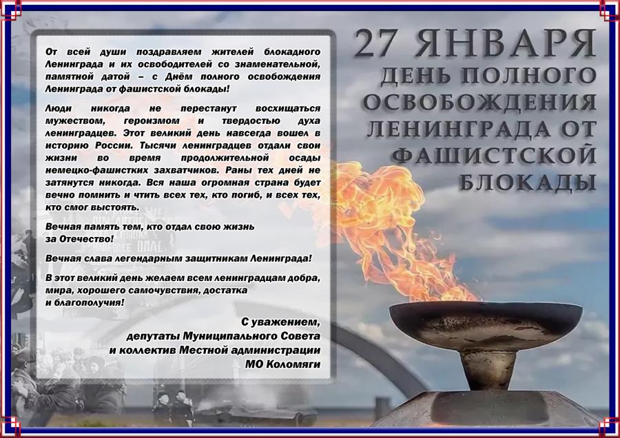 27 января - День полного освобождения Ленинграда от фашистской блокады