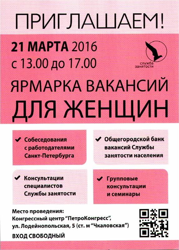 Ярмарка вакансий для женщин состоится 21 марта