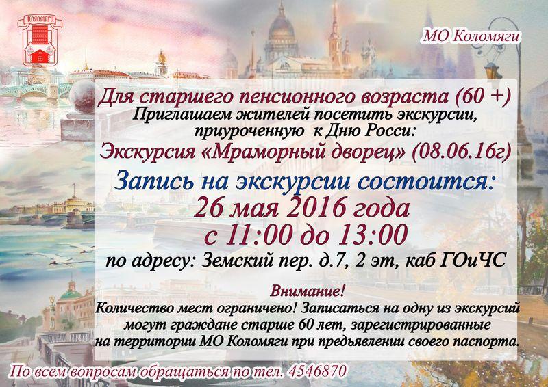 Запись на экскурсию для старшего пенсионного возраста