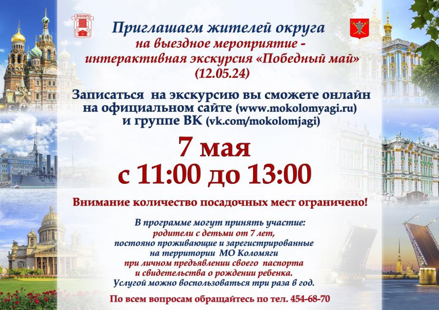 Приглашаем родителей с детьми посетить бесплатное выездное мероприятие( экскурсию) «Победный май".