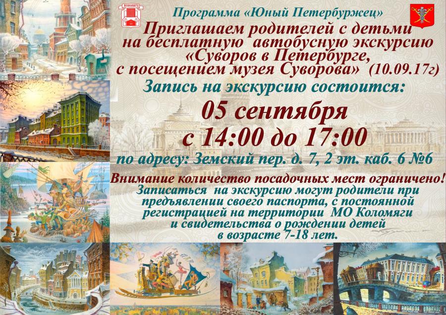 Запись на экскурсию "Суворов в Петербурге с посещением музея Суворова"