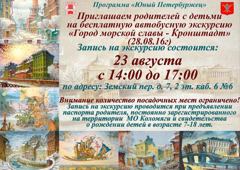 Запись на экскурсию в Кронштадт - 23 августа