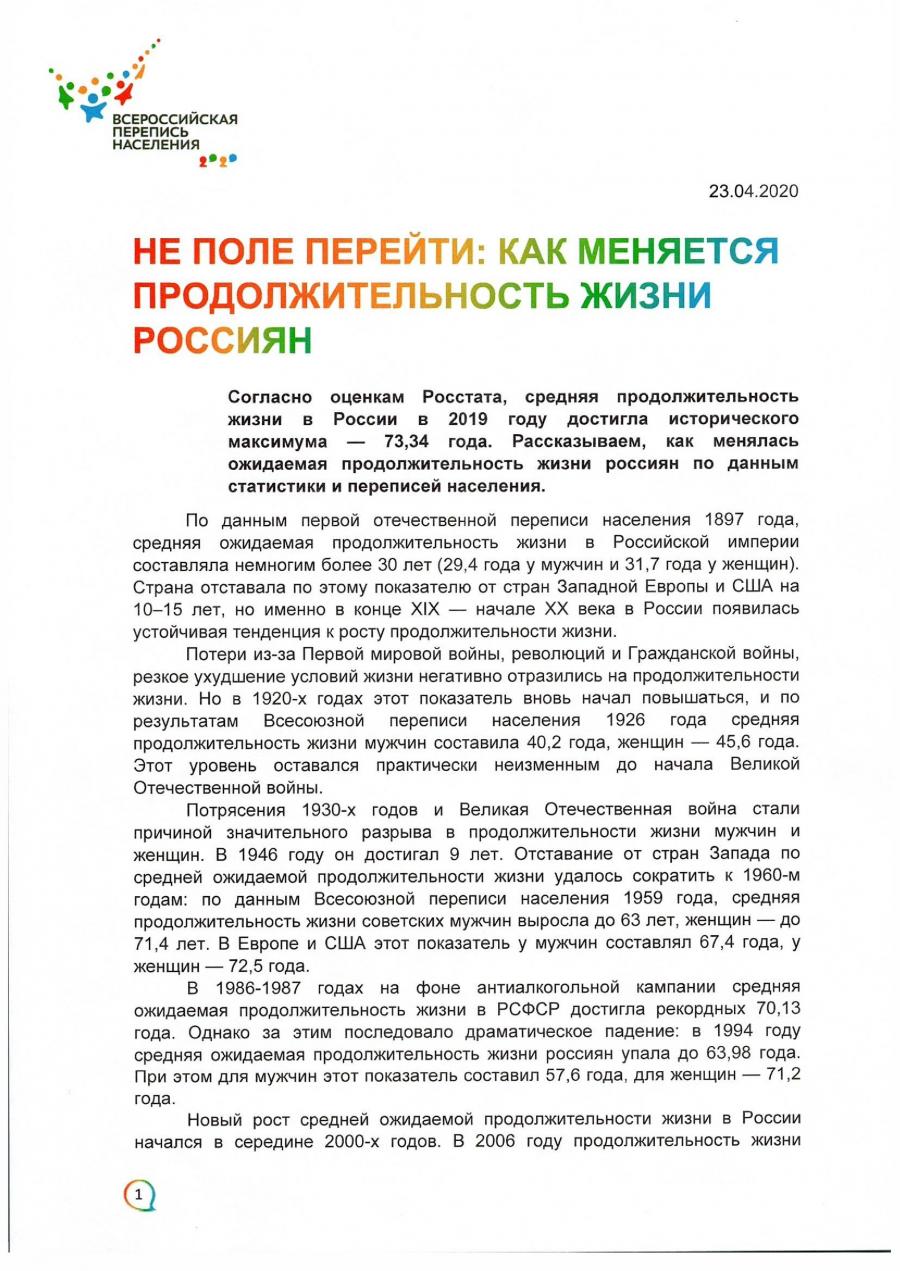 > Полезная информация > Всероссийская перепись населения > НЕ ПОЛЕ ПЕРЕЙТИ: КАК МЕНЯЕТСЯ ПРОДОЛЖИТЕЛЬНОСТЬ ЖИЗНИ РОССИЯН