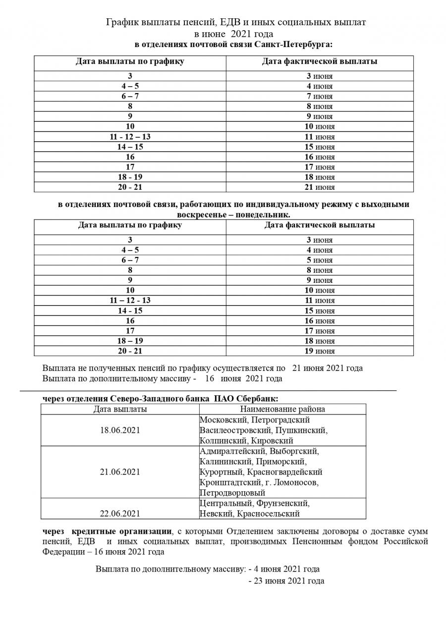 > Полезная информация > Меры социальной поддержки > Информация 2021 год > Новости - июнь, 2021 > График выплаты пенсий, ЕДВ и иных социальных выплат в июне 2021 года в отделениях почтовой связи Санкт-Петербурга