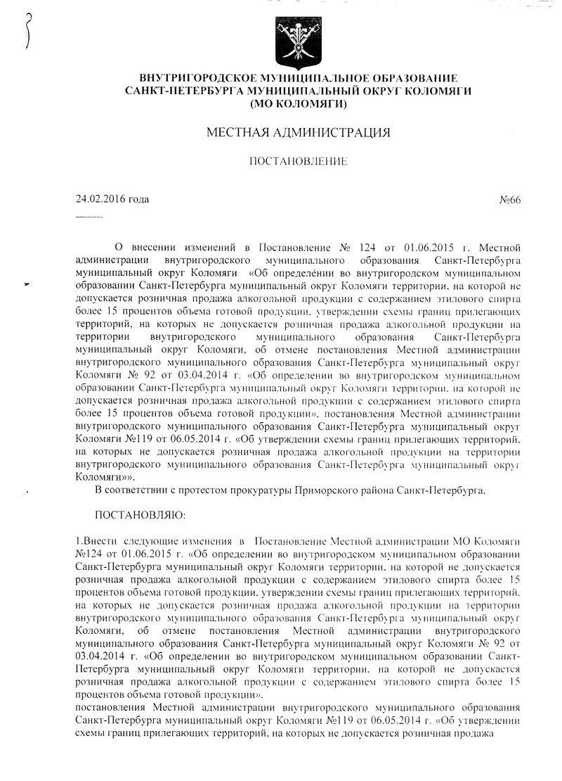 Постановление №66 от 24.02.2016 О внесении изменений в Постановление №124