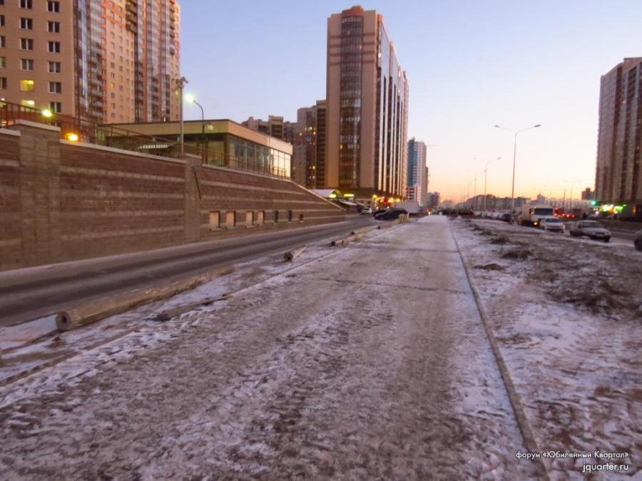 В ответ на многочисленные просьбы жителей и депутатов разных уровней подрядчик совместно с Комитетом по строительству решили в первую очередь к Новому 2016 году сделать нормальный тротуар от Юбилейного квартала до ул. Шаврова, предварительно осуществив ревизию всех коммуникаций под ним.