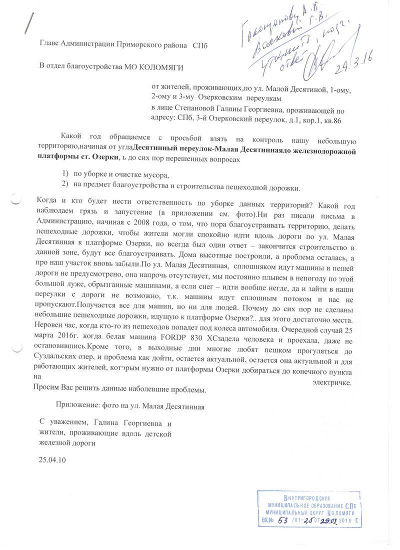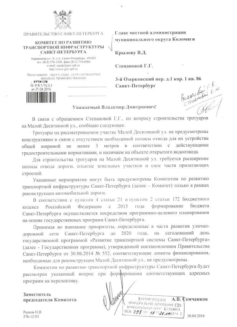 > Обращения > Обзоры обращений граждан и организаций > Обращение по поводу обустройства территории по ул. Малая Десятинная