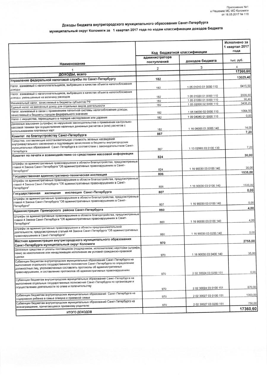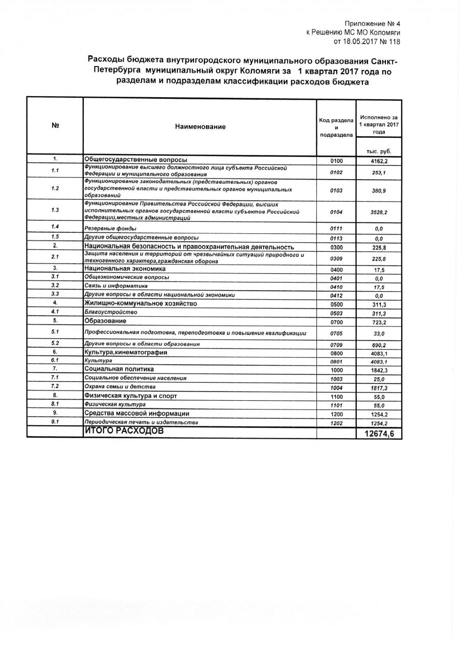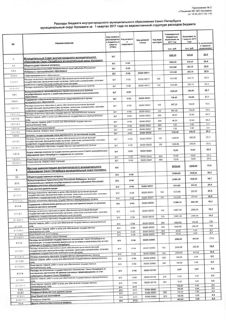 > Нормотворческая деятельность > Местная администрация > Постановления, Распоряжения местной администрации > Постановления 2017 год > Постановление №118 Об исполнении бюджета внутригородского муниципального образования Санкт-Петербурга муниципальный округ Коломяги
