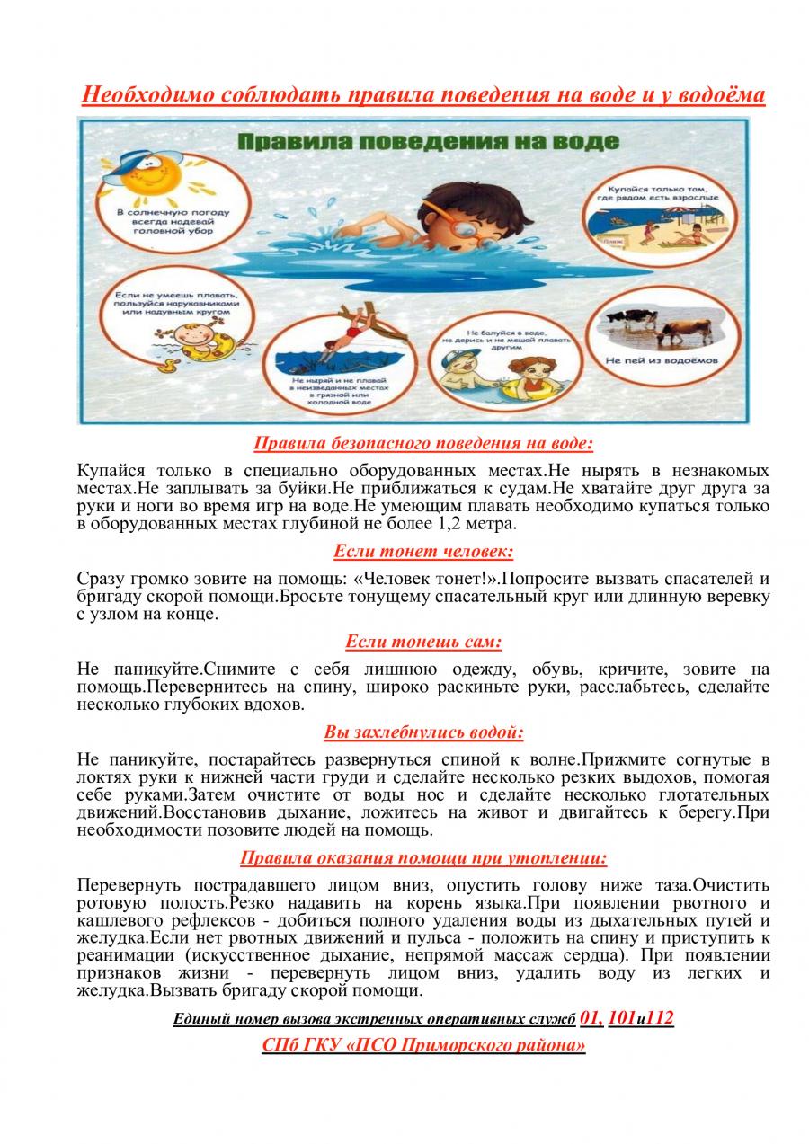 Памятка поведения на воде