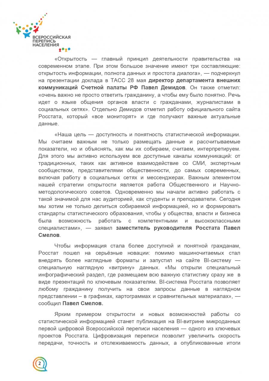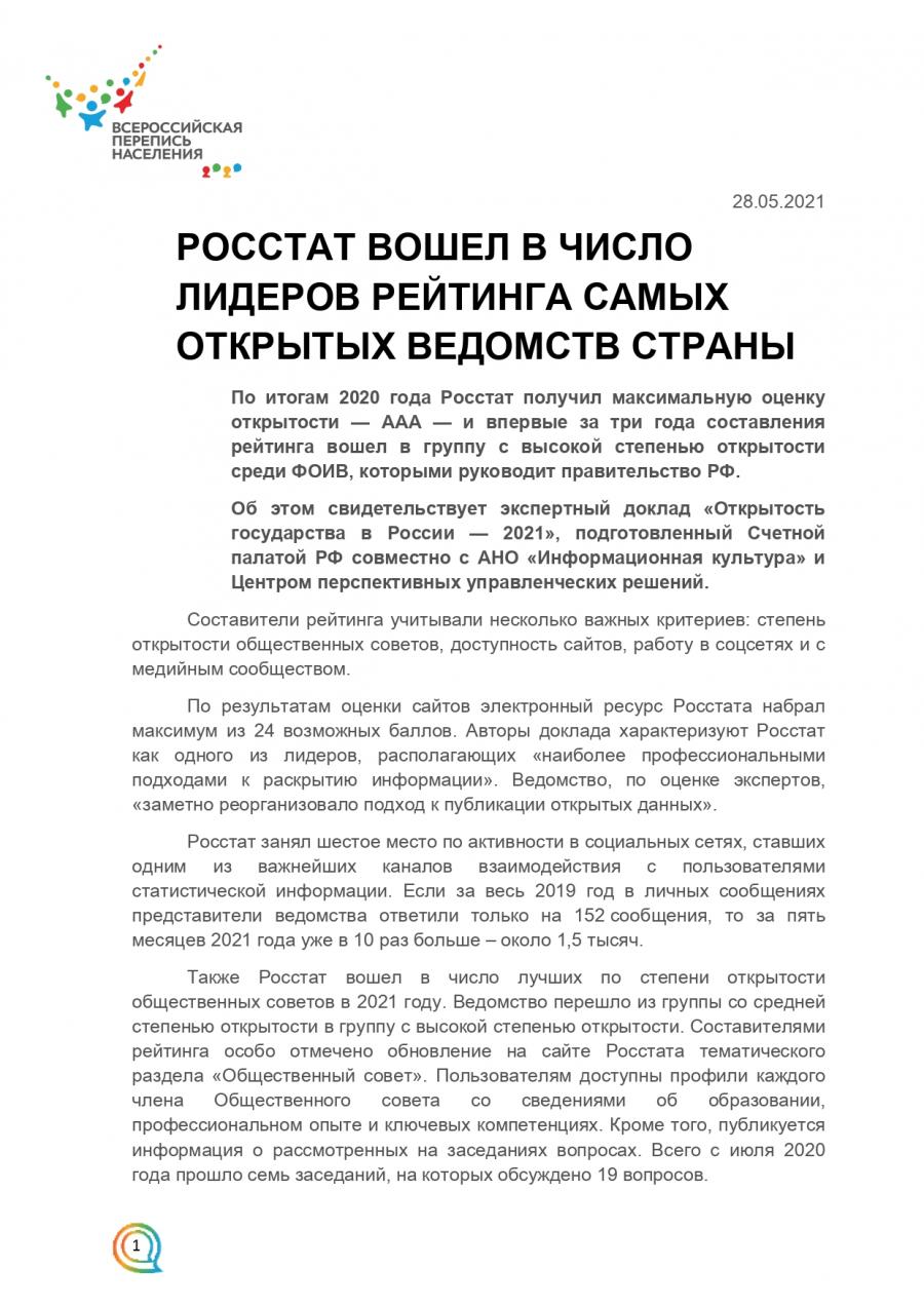 > Полезная информация > Всероссийская перепись населения > РОССТАТ ВОШЕЛ В ЧИСЛО ЛИДЕРОВ РЕЙТИНГА САМЫХ ОТКРЫТЫХ ВЕДОМСТВ СТРАНЫ