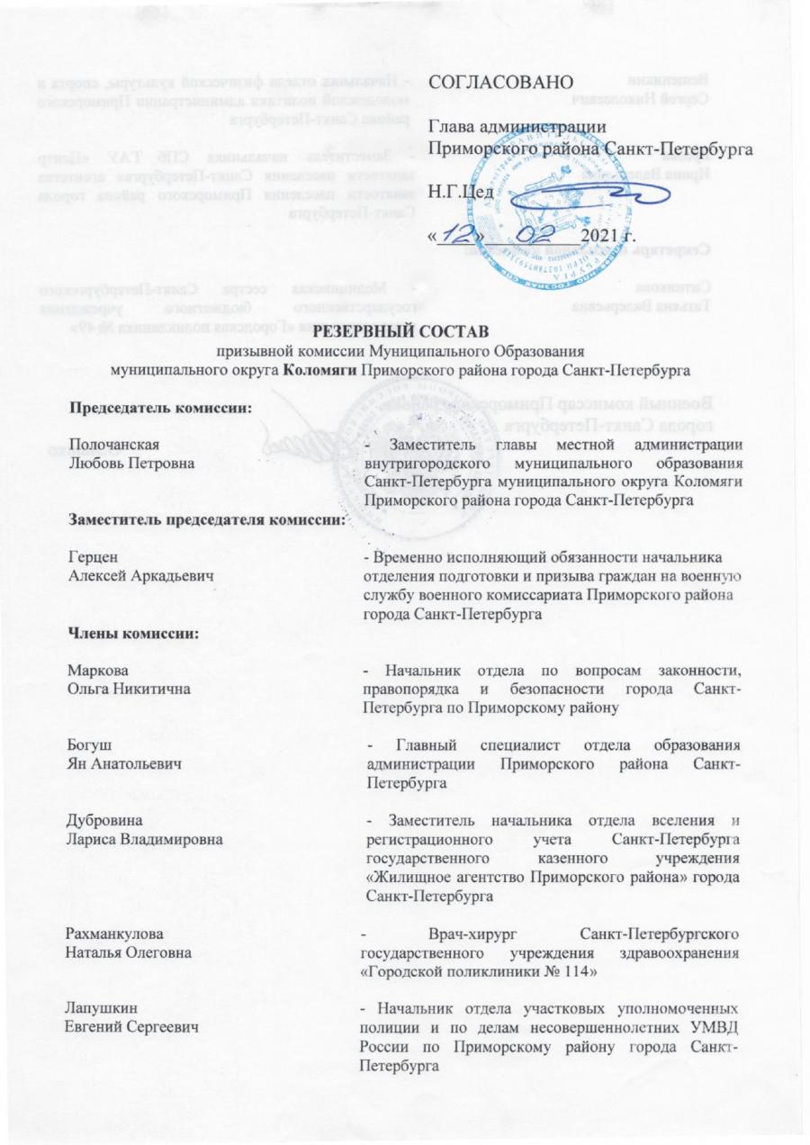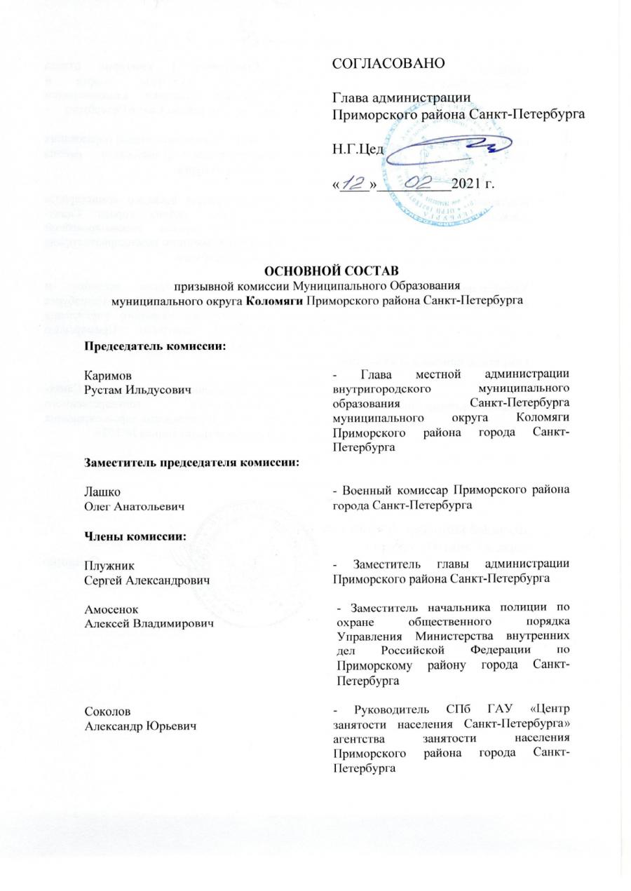Состав и контакты ИКМО Коломяги